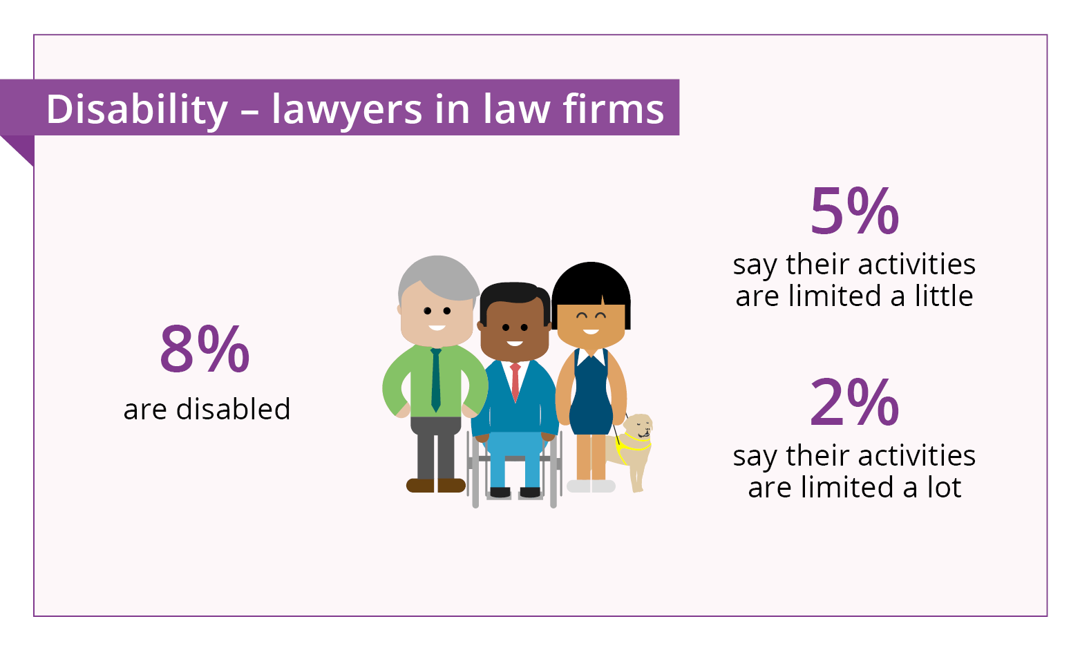 • 9% of partners declared they had a disability compared with 8% of solicitors.