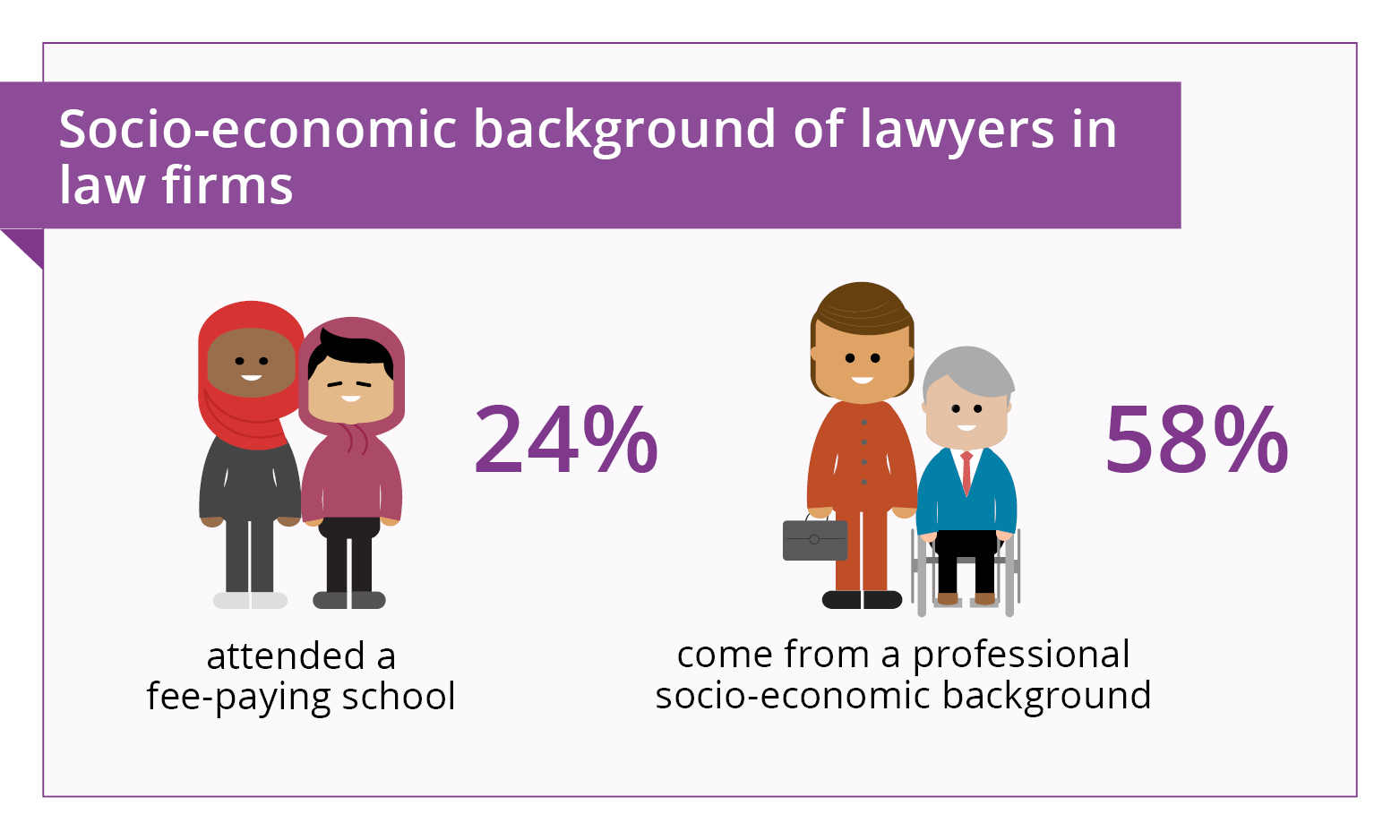 • 58% of lawyers were from a professional background, 13% from an intermediate background and 17% from a lower socio-economic background. 3% chose other responses and 10% preferred not to say their background.